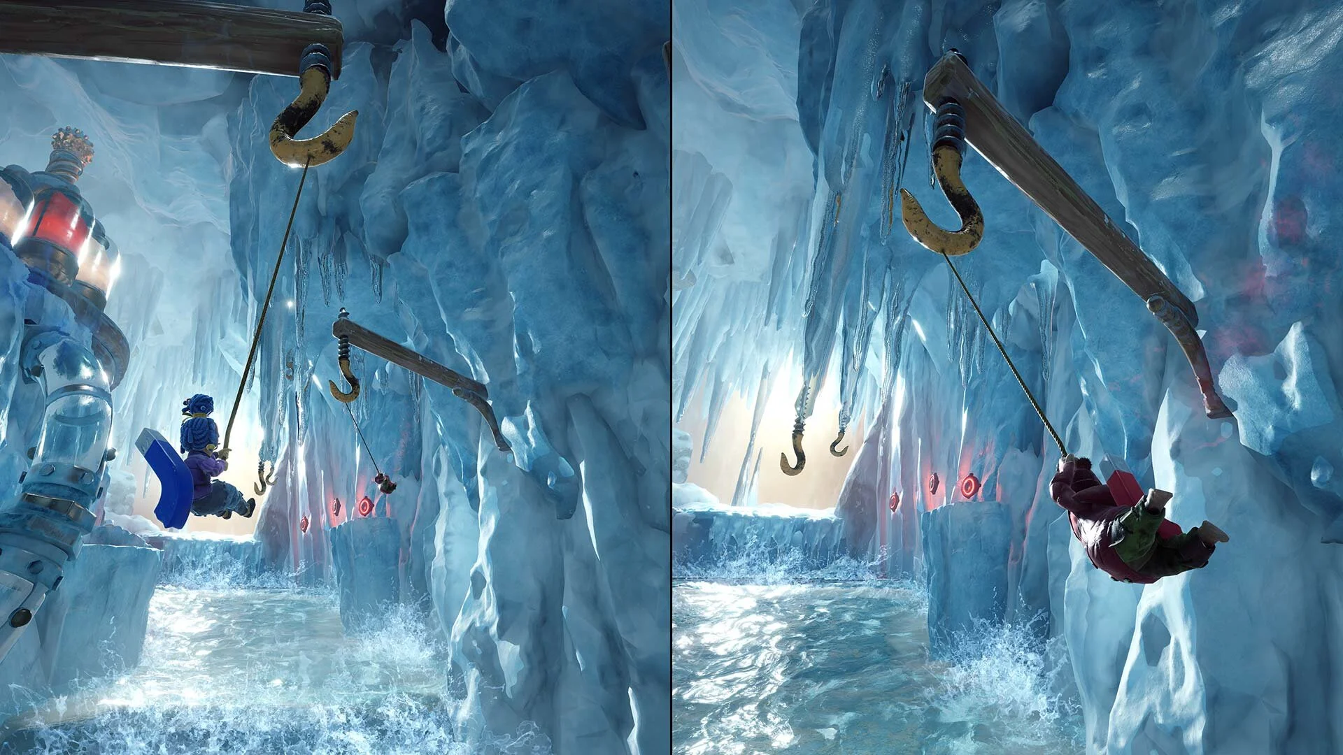 The Couple Challenges that you’ll find consist of 25 Minigames that are super entertaining and definitely bring out each of our competitive sides. Each will have you going head to head in tasks such as tug of war, or whack-a-Cody, and you can play as many times as you like to see who comes out on top. You can also access unlocked Minigames within the pause menu, and this shows any previously held high scores, which is good for if you’re trying to improve. Having them be accessible like this is great, as it gives a fun way to still get involved with the game at a later point, if you’ve completed the game or just don’t have time to sit down to work through a chapter. There are different experiences to come across, along with the Couple Challenges, that take the place of typical collectibles, including one that references back to Hazelight’s previous title, A Way Out, as well as different interactive items and little creatures peeking out at you from various boxes and tins, and these are such a fun and unique addition as they feel rewarding to come across organically, rather than stressing to try and find them. You’ll often find yourself being distracted by random things you discover, such as winding up toy cars to pull off some stunts, and trying to butt-bash little spying creatures.